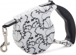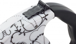 Smycz z samonawijającym i blokującym mechanizmem zapobiega zwisaniu i umożliwia skuteczną kontrolę psa.