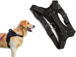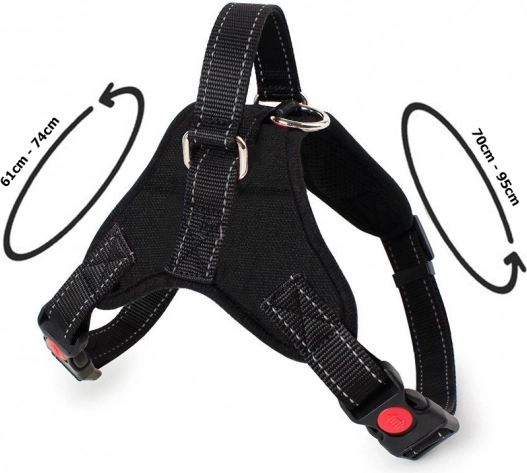 Beznaciskowe szelki XL zaprojektowano dla stabilnego, bezpiecznego i wygodnego prowadzenia psa bez obciążania szyi. Miękkie wyściełanie i oddychające materiały pomagają zapobiegać otarciom i pozwalają skórze oddychać. Regulowane paski zapewniają precyzyjne dopasowanie do klatki piersiowej i szyi.