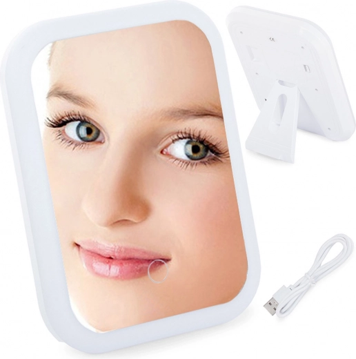 Ciesz się perfekcyjnym makijażem z LED oświetlonym lustrem kosmetycznym. To lustro jest wyposażone w wydajne oświetlenie LED, które zapewnia jasne i równomierne oświetlenie. Sterowanie jest łatwe dzięki dotykowemu przełącznikowi, który jest zintegrowany na powierzchni lustra. Dodatkowo może być zasilane zarówno trzema bateriami AA, jak i kablem USB.