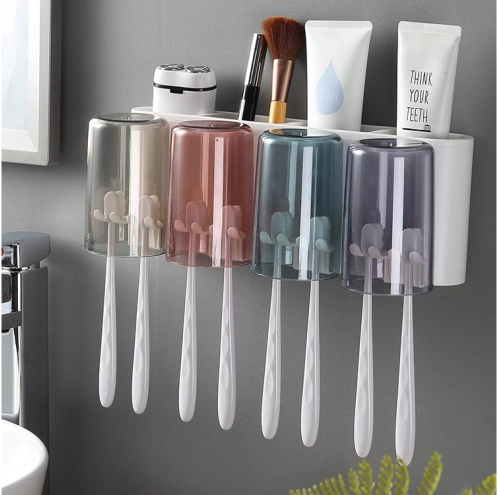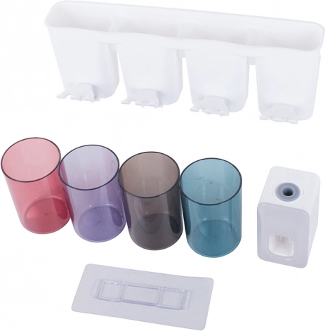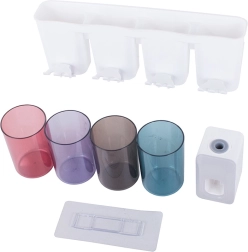 Zaprowadź porządek w łazience dzięki sprytnemu organizerowi, który łączy uchwyt na szczoteczki, dozownik pasty do zębów oraz przegrody do przechowywania codziennych potrzebnych rzeczy. W zestawie znajdują się 4 plastikowe kubki (300 ml) dla wygodnego użytkowania przez całą rodzinę. Montaż jest szybki i czysty – wystarczy przymocować do ściany za pomocą mocnej przyssawki, bez wiercenia.