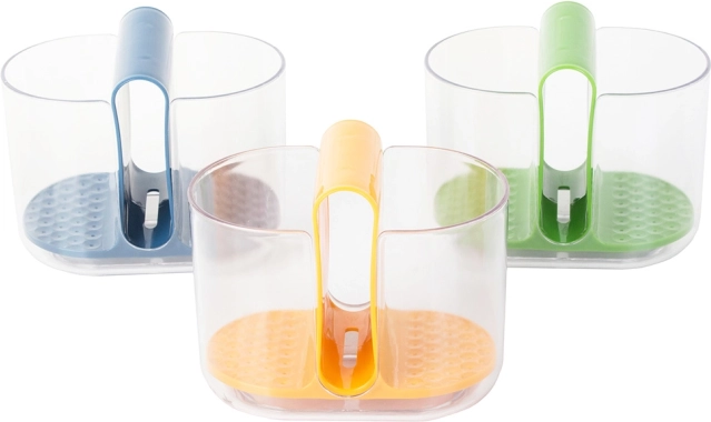 Boczne przegródki są przeznaczone na sztućce, a środkowa przegródka jest idealna na zmywarkę. Zintegrowane otwory umożliwiają wodzie z sztućców spływać na dno, co zapewnia szybkie schnięcie. Ten ociekacz jest łatwo wyjmowalny, co ułatwia opróżnianie i konserwację.