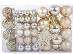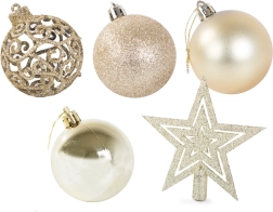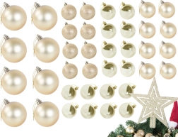 Zestaw zawiera ozdoby w różnych rozmiarach i wzorach, które nadadzą Twojej choince szlachetny wygląd.