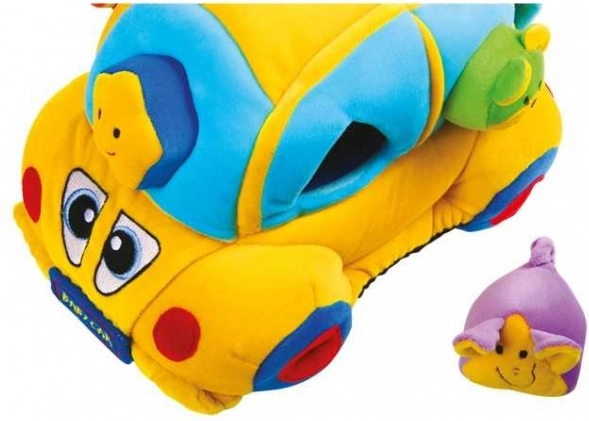 Odkryj zabawny tekstylny samochodzik z przyjazną buźką, zaprojektowany jako bezpieczna zabawka–sorter dla maluchów. Miękkie pluszowe nadwozie jest przyjemne w dotyku, a poszczególne kształty podczas manipulacji szeleszczą, piszczą lub delikatnie dzwonią. Jeden z elementów zawiera folię lustrzaną, która zachęca dzieci do odkrywania i wspiera percepcję wzrokową.