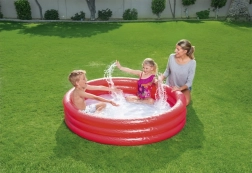 Dmuchany, trójpierścieniowy basenik dla dzieci od 2 lat o pojemności 282 l wody. Przybliżony rozmiar basenu: 152×30 cm. W zestawie znajduje się zestaw naprawczy.