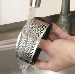 Dzięki prostej konstrukcji praskę szybko się czyści – wystarczy ją spłukać pod bieżącą wodą lub włożyć do zmywarki. Świetnie sprawdzi się także do ziół, imbiru i drobnych warzyw.