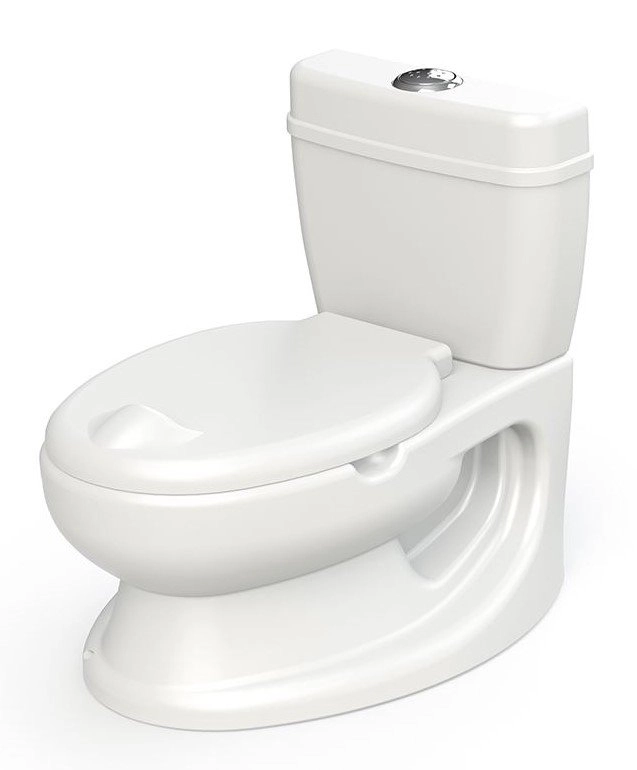 Przycisk w górnej części nocnika wydaje autentyczny dźwięk spłukiwania, który bawi dzieci i motywuje do regularnego korzystania z toalety.
