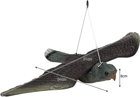 - Realistyczny wygląd – dokładny kształt i szczegóły jastrzębia zapewniają skuteczność przy odstraszaniu.