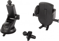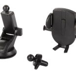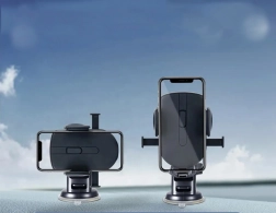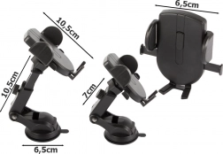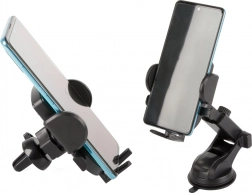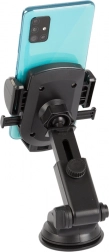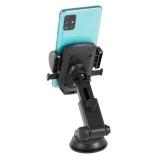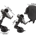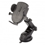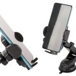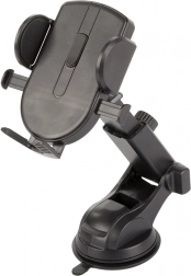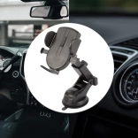 Uchwyt na telefon do samochodu został zaprojektowany, aby zapewnić bezpieczne i wygodne korzystanie z urządzenia mobilnego podczas jazdy. Montuje się go łatwo na przedniej szybie lub desce rozdzielczej, a dzięki systemowi regulowanych ramion uchwyt nadaje się do większości telefonów i urządzeń GPS.