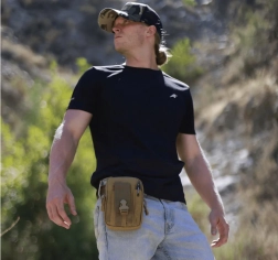 Sprytna organizacja obejmuje 2 główne komory na zamek z wewnętrznymi przegródkami, kieszeń/uchwyt na latarkę lub długopis oraz przedni uchwyt na telefon z regulowanym paskiem. Kabura mieści telefon, dokumenty, portfel, klucze i drobne narzędzia. Dzięki kompaktowym wymiarom pozostaje dyskretna, a jednocześnie maksymalnie funkcjonalna.