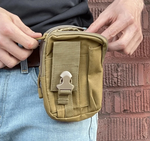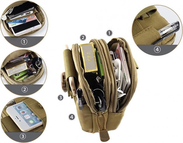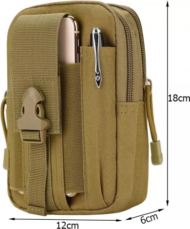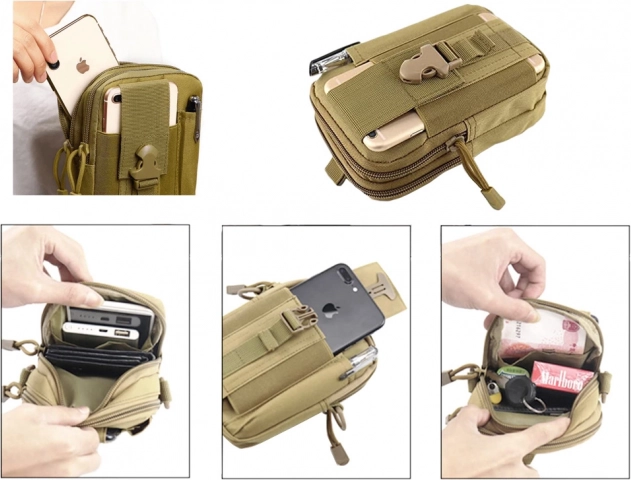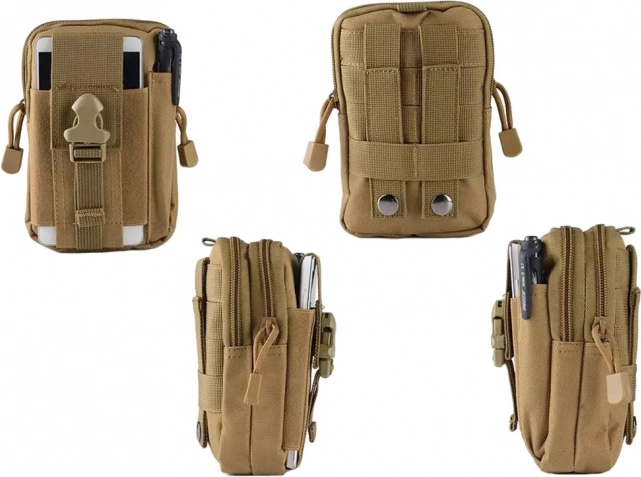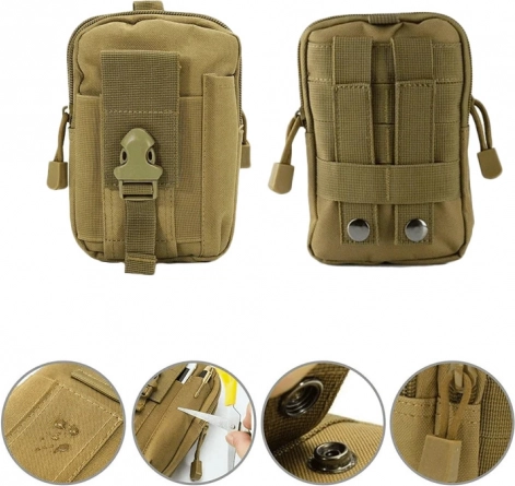 Kompaktowa taktyczna kabura na pas z systemem MOLLE idealnie sprawdzi się podczas wędrówek, biwakowania oraz na co dzień. Oferuje 2 główne komory na zamek, liczne kieszenie dla przejrzystej organizacji oraz przedni uchwyt na telefon z regulowanym paskiem. Trwały, wodoodporny materiał i mocne szwy chronią Twoje rzeczy, a wyściełane wnętrze amortyzuje wstrząsy. Można przymocować do pasa, plecaka lub karabińczyka.
