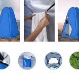 Praktyczny i uniwersalny namiot zapewniający prywatność w podróży – służy jako przebieralnia, prysznic oraz WC. Jest samorozkładający, wodoodporny i po złożeniu zajmuje minimum miejsca. Wewnątrz znajdziesz pojemną kieszeń, taśmę do wieszania ubrań oraz okienko wentylacyjne dla lepszej cyrkulacji powietrza.