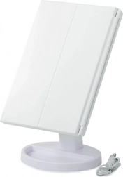 Praktyczne, stołowe lusterko kosmetyczne z 22 diodami LED zapewnia idealne oświetlenie podczas makijażu, pielęgnacji cery i zakładania soczewek. Oferuje powiększenie 2x i 3x na bocznych panelach, dotykową regulację jasności oraz stabilną podstawę. Zasilanie przez kabel USB lub baterie 4× AAA dla maksymalnej wygody w domu i w podróży.