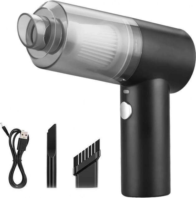 Utrzymuj swoje auto w czystości zawsze i wszędzie. Ten przenośny i lekki odkurzacz oferuje moc 120 W, wygodne ładowanie USB oraz praktyczne oświetlenie LED, które zapewnia doskonałą widoczność nawet w ciemnych zakamarkach. Bezworkowy system z filtrem zapobiega wydostawaniu się zabrudzeń i chroni silnik.