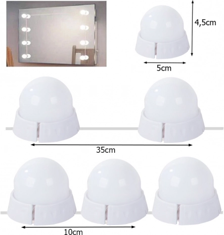 Światła są łatwe w montażu, a długość przewodów można łatwo regulować, aby dopasować je do konkretnego lustra. Idealnie oświetlają twarz do perfekcyjnego makijażu, a jednocześnie stanowią stylową dekorację każdego pomieszczenia.