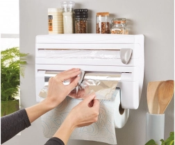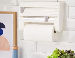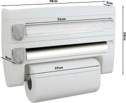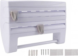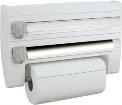 Zaprowadź porządek w kuchni dzięki praktycznemu ściennemu organizerowi 4 w 1, który pomieści folię aluminiową, spożywczą oraz ręczniki papierowe, a dodatkowo oferuje górną półkę na przyprawy i drobiazgi. Dzięki precyzyjnym, ukrytym ostrzom oderwiesz folie szybko i bez postrzępionych krawędzi, montaż jest prosty i odpowiedni dla standardowych rolek do 31/27 cm.