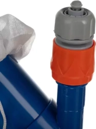Odkurzacz łatwo podłączysz do węża ogrodowego przez szybkozłączkę. Ciśnienie wody zasysa zanieczyszczenia do worka, dzięki czemu czyszczenie jest szybkie i bez skomplikowanej konserwacji.
