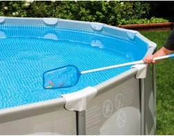Szeroka siatka z drobnym oczkiem skutecznie usuwa zanieczyszczenia z tafli i utrzymuje wodę czystą oraz przejrzystą.